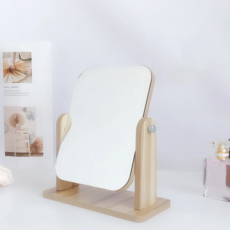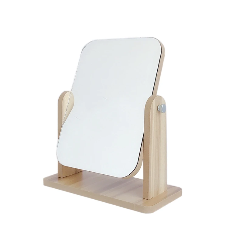 Desktop Rectangular Plastic Mirror Double-Sided Wood Grain Color Decorative Bathroom Vanity Mirror