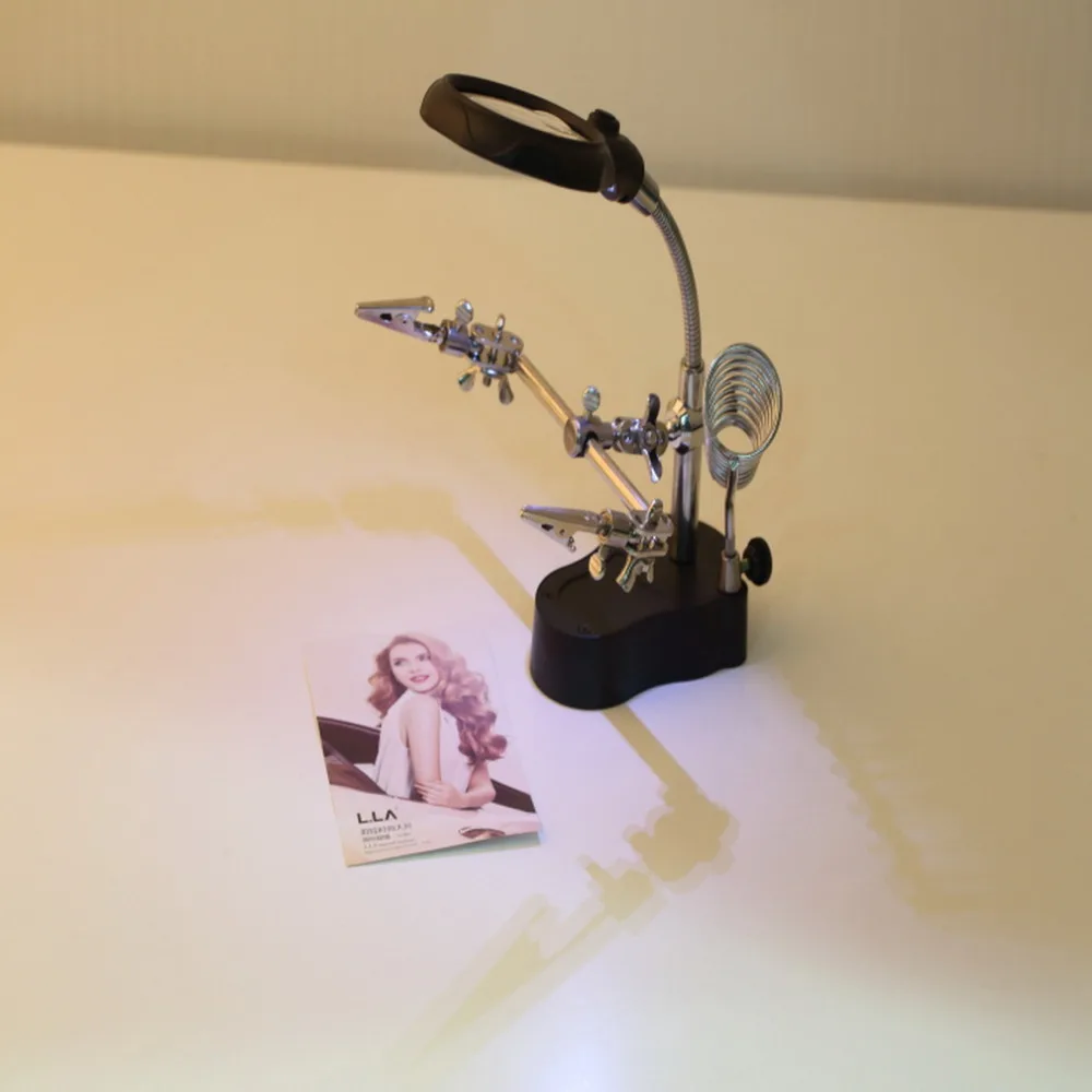Best Seller ICOCO New High Quality 3.5x 12X LED Light Magnifier & Desk Lamp Helping Hand Repair Clamp Clip Stan