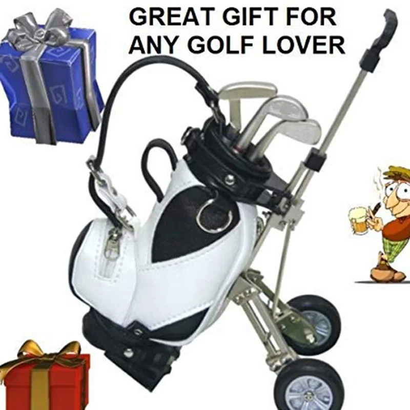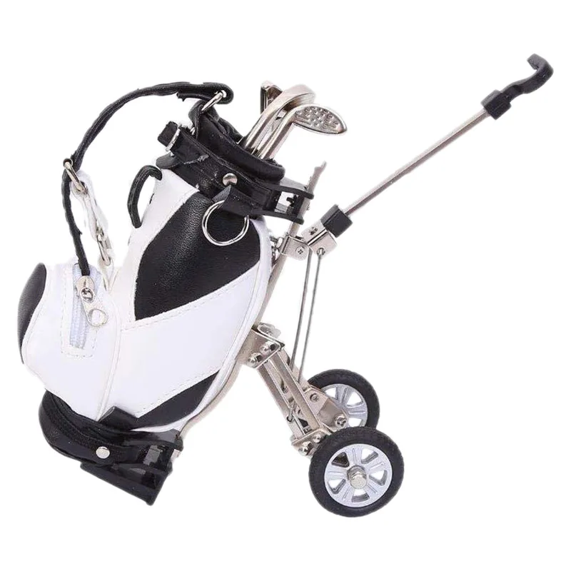 Mini Desktop Golf Souvenir Set with 3 Pens Shaped Like Golf Clubs a Miniature Golf BagPen Holder No